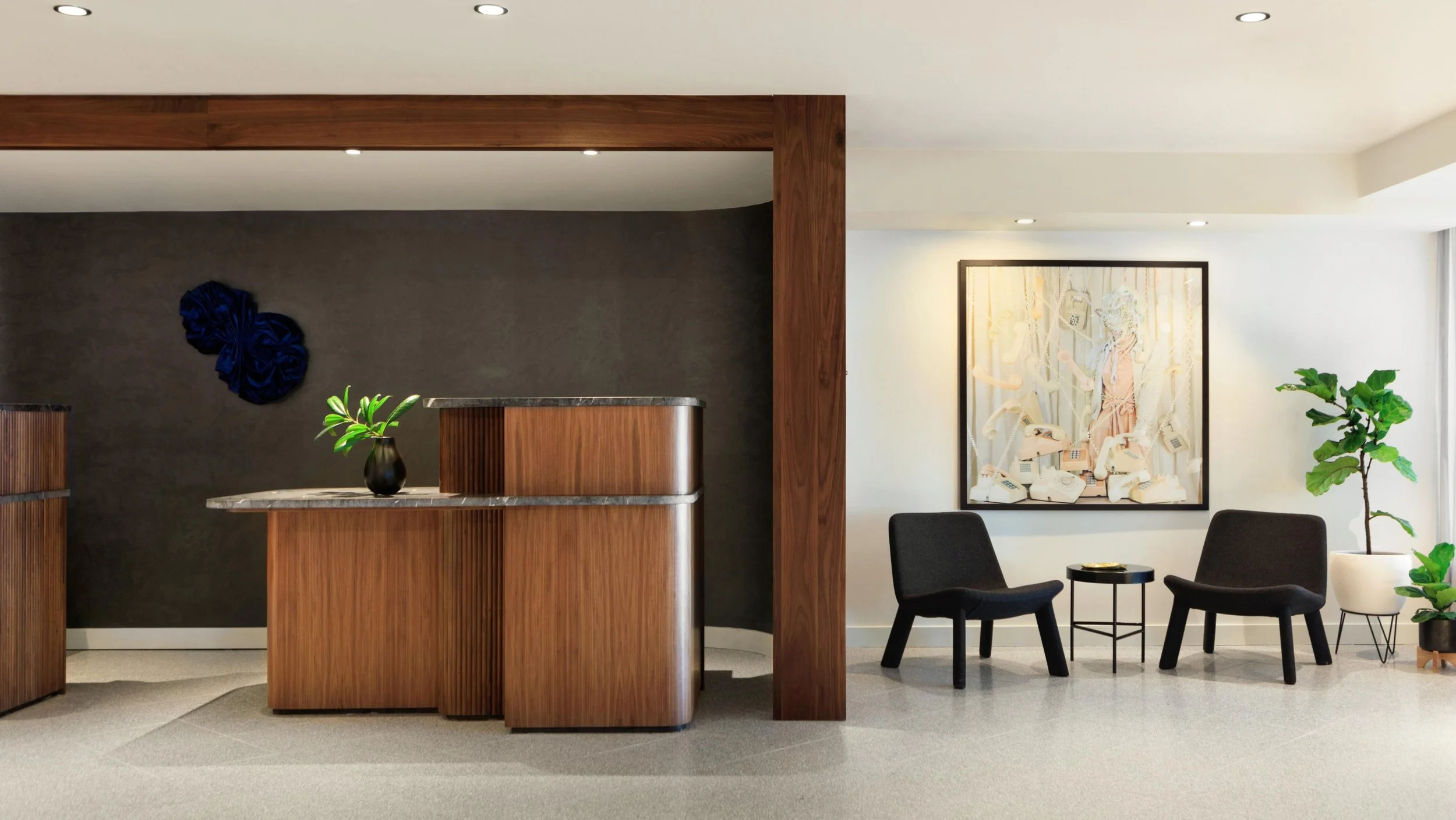 Public spaces—lobby, lounge, gym, corridors, meeting rooms